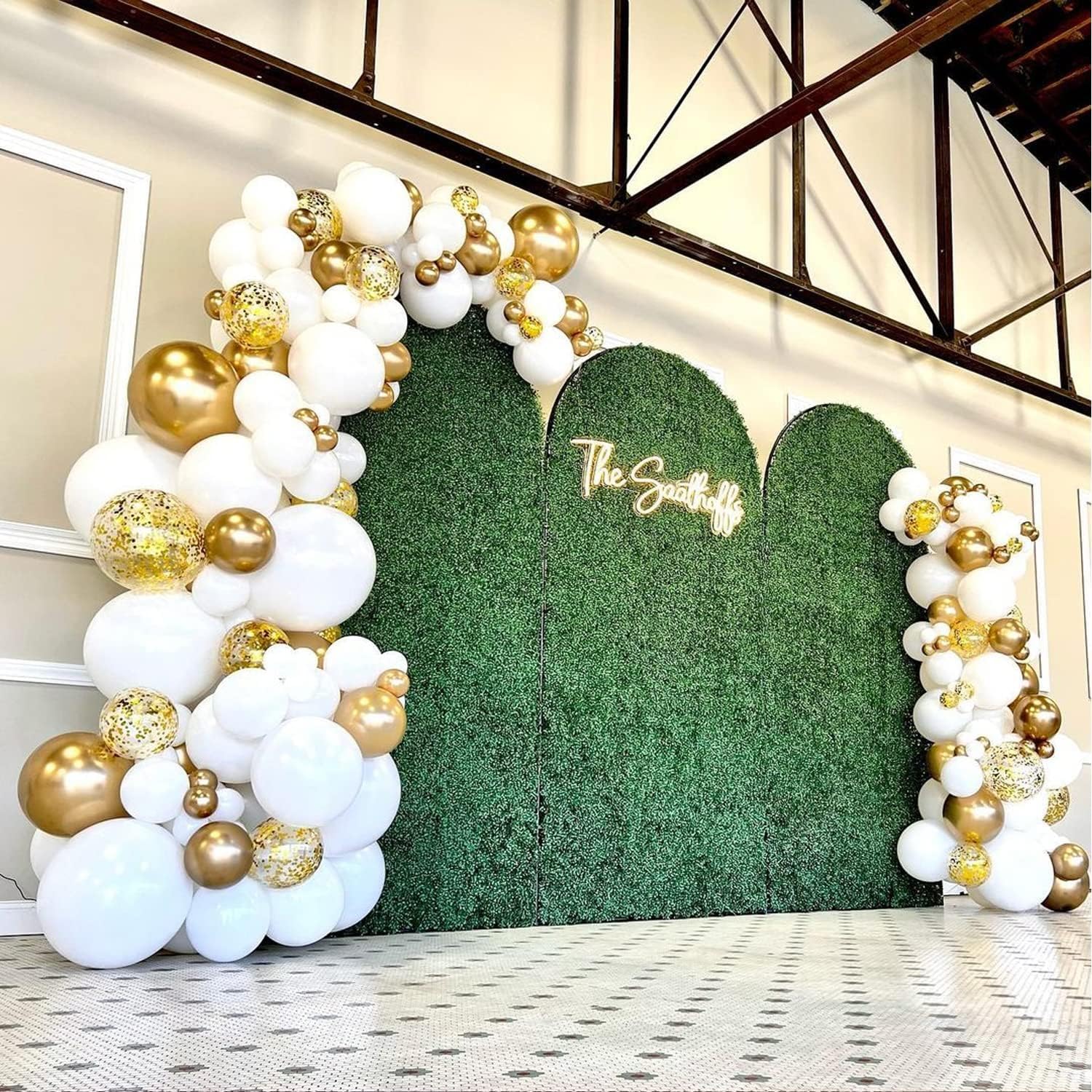 Transform your celebration space with this comprehensive 110-piece balloon garland kit, expertly curated for weddings, birthdays, baby showers, and anniversaries. The elegant white and gold color palette creates a sophisticated backdrop that complements any event theme. This all-in-one set includes pre-sized balloons, adhesive strips, and assembly tools, eliminating guesswork and reducing setup time. Whether you're decorating an intimate gathering or a grand celebration, this kit delivers professional-quality results without requiring specialized skills. Create stunning focal points, entrance displays, or photo backdrops that leave lasting impressions on your guests.