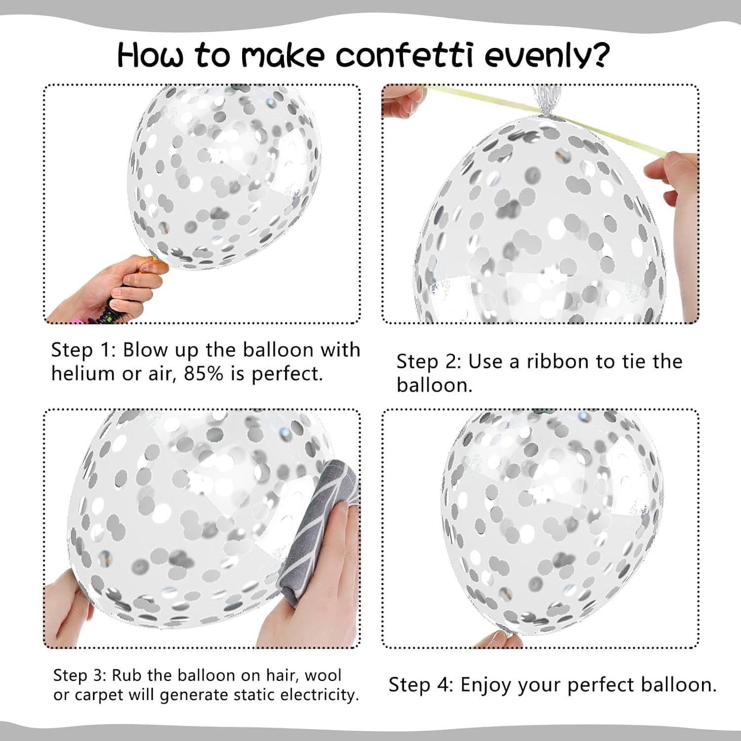 Elevate your event with this sophisticated 60-piece metallic confetti balloon assortment in purple, silver, and white. Each balloon combines a premium metallic sheen with embedded confetti elements that create visual intrigue and movement. The tri-color palette offers refined elegance suitable for weddings, milestone birthdays, baby showers, and formal celebrations. The metallic coating provides exceptional durability and color vibrancy, while the confetti detail adds dimension without overwhelming your décor scheme. Build stunning focal points with balloon clusters, arches, or installations that showcase professional-grade presentation and lasting visual impact throughout your event.