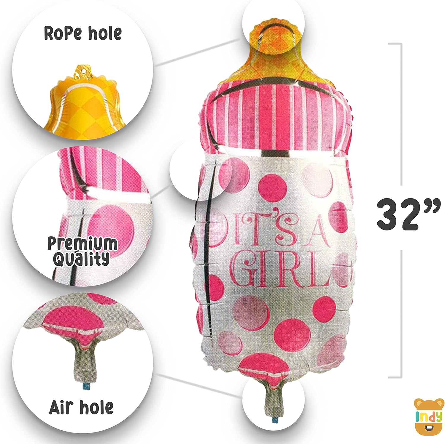 | Included components | It’s A Girl Bottle Foil Balloon ,Printed Baby Girl Round Foil Balloons, Stripes Pattern Printed Round Foil Balloons, Pink And White Pastel BalloonsIt’s A Girl Bottle Foil Balloon ,Printed Baby Girl Round Foil Balloons, Stripes Pattern Printed Round Foil Balloons, Pink And W… See more |