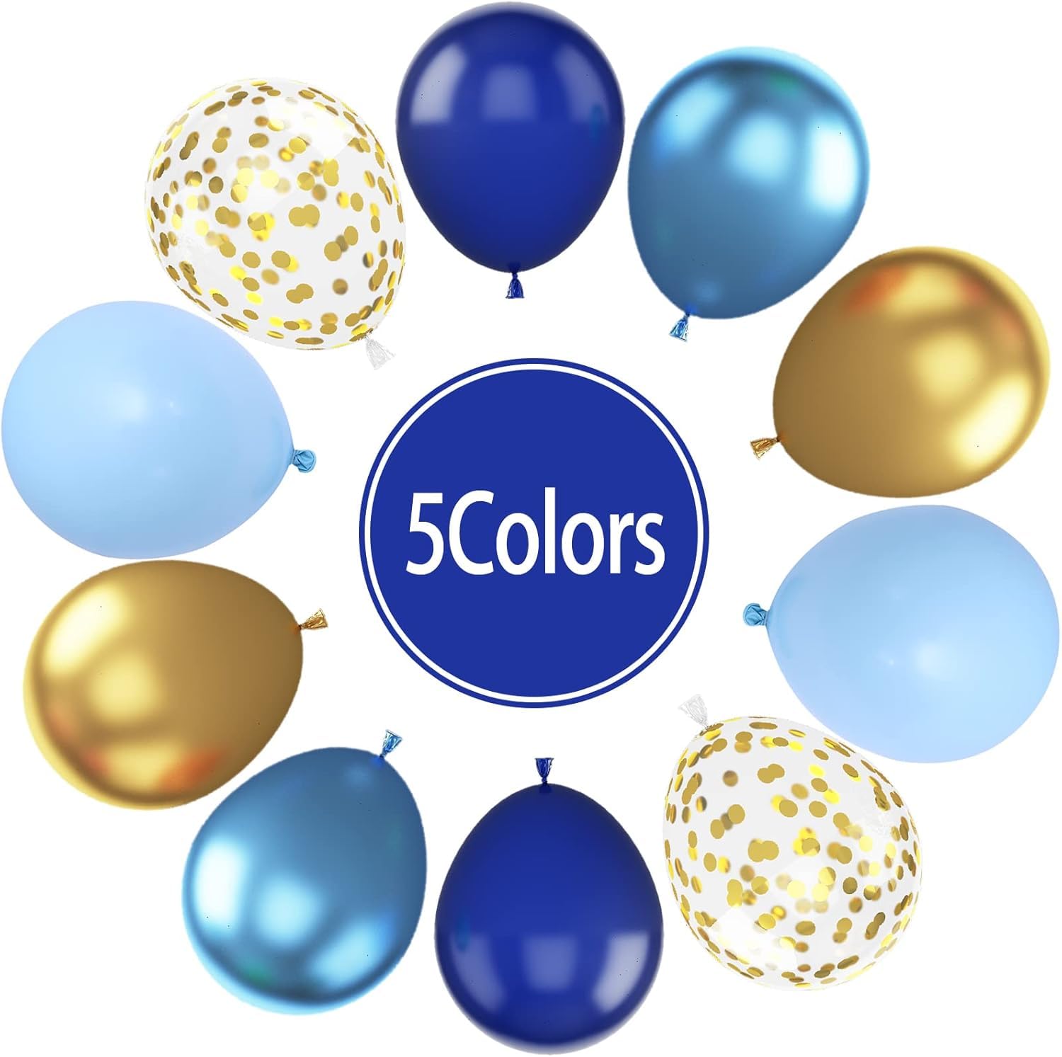 Blue Gold Confetti Balloons - 60 Piece Metallic Set for Birthday