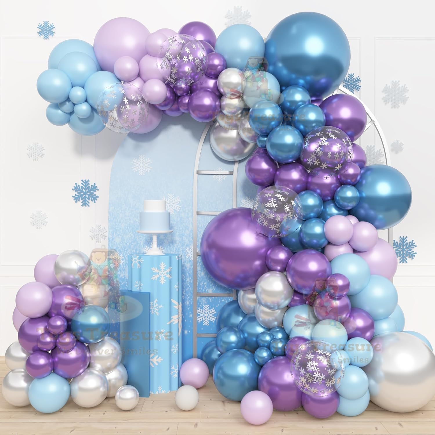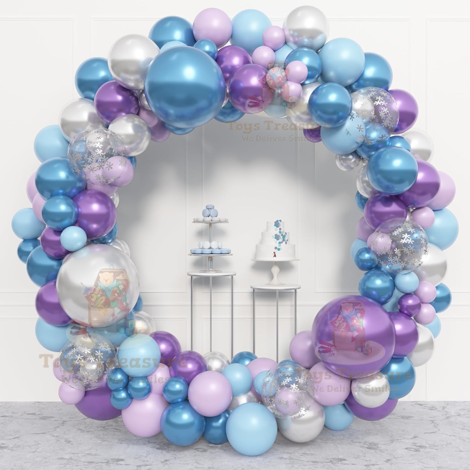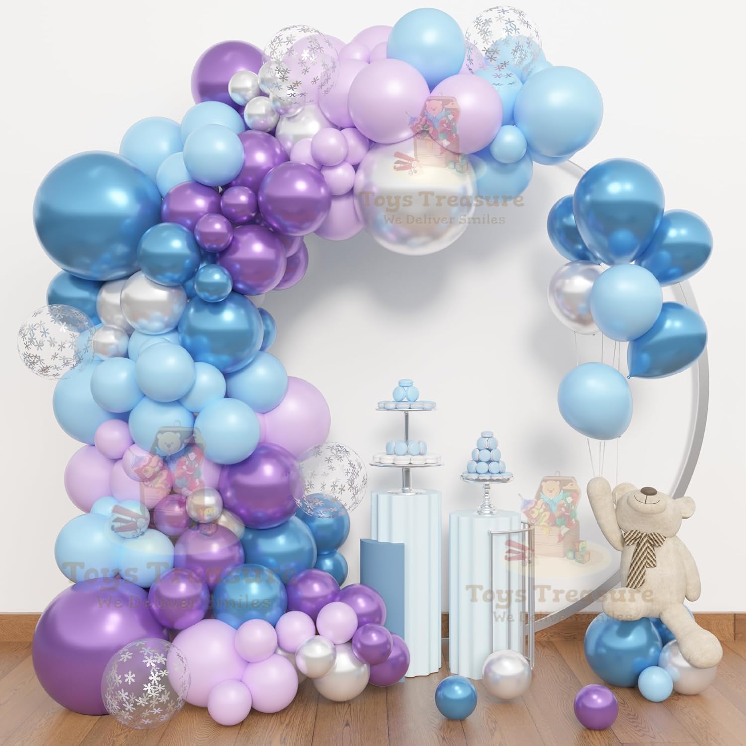 Blue, Purple and Silver Latex Metallic Confetti Balloons kit - 153 Pcs Pack