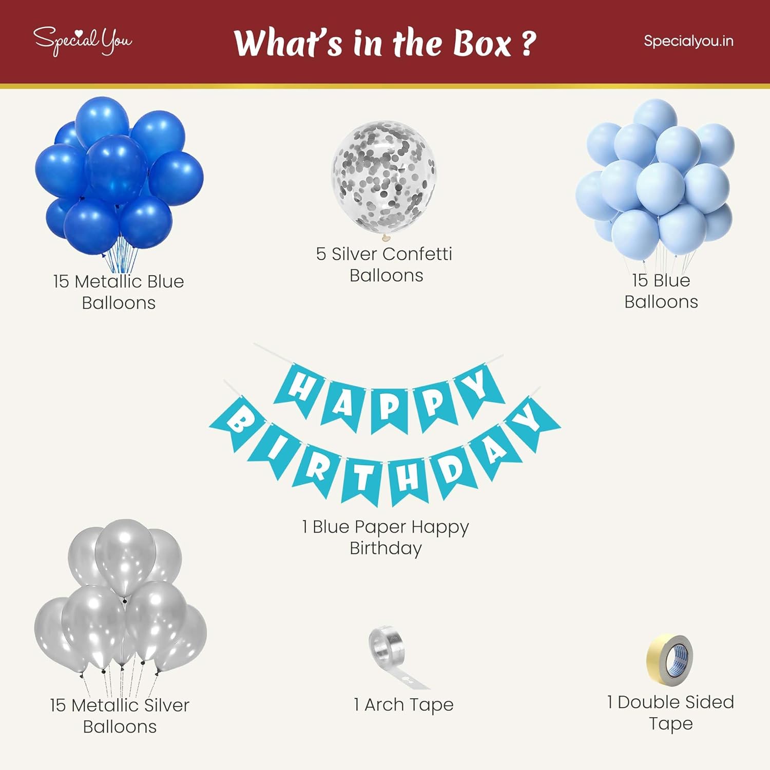 # Blue Theme Birthday Decoration Kit for Boys – 63 Pieces Transform any birthday celebration into a coordinated showcase with this comprehensive 63-piece decoration kit. Featuring soft pastel blue and white balloons as the centerpiece, this collection includes everything needed to create a polished, cohesive party atmosphere. The kit combines balloons with coordinating Happy Birthday signage and additional décor elements, eliminating the need for multiple shopping trips. Ideal for parents and event planners seeking a complete, ready-to-deploy solution that delivers professional results without the complexity of sourcing individual items.