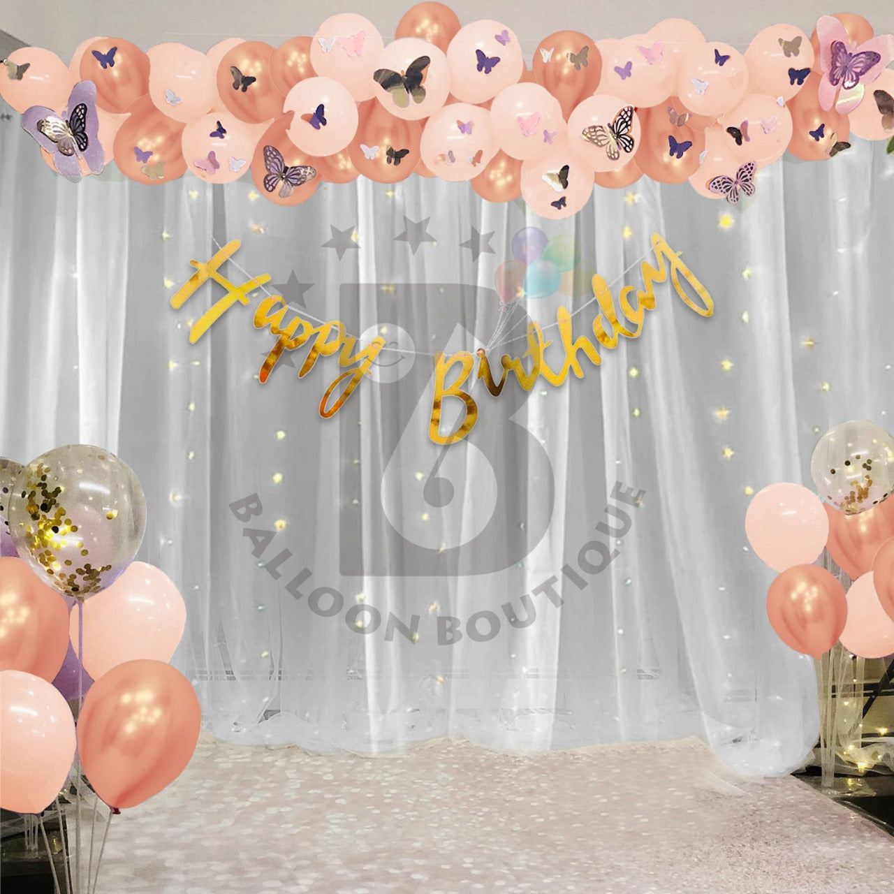 Butterfly's Birthday decoration 80 Pcs pack curtains tapes banner fairy light balloon kit