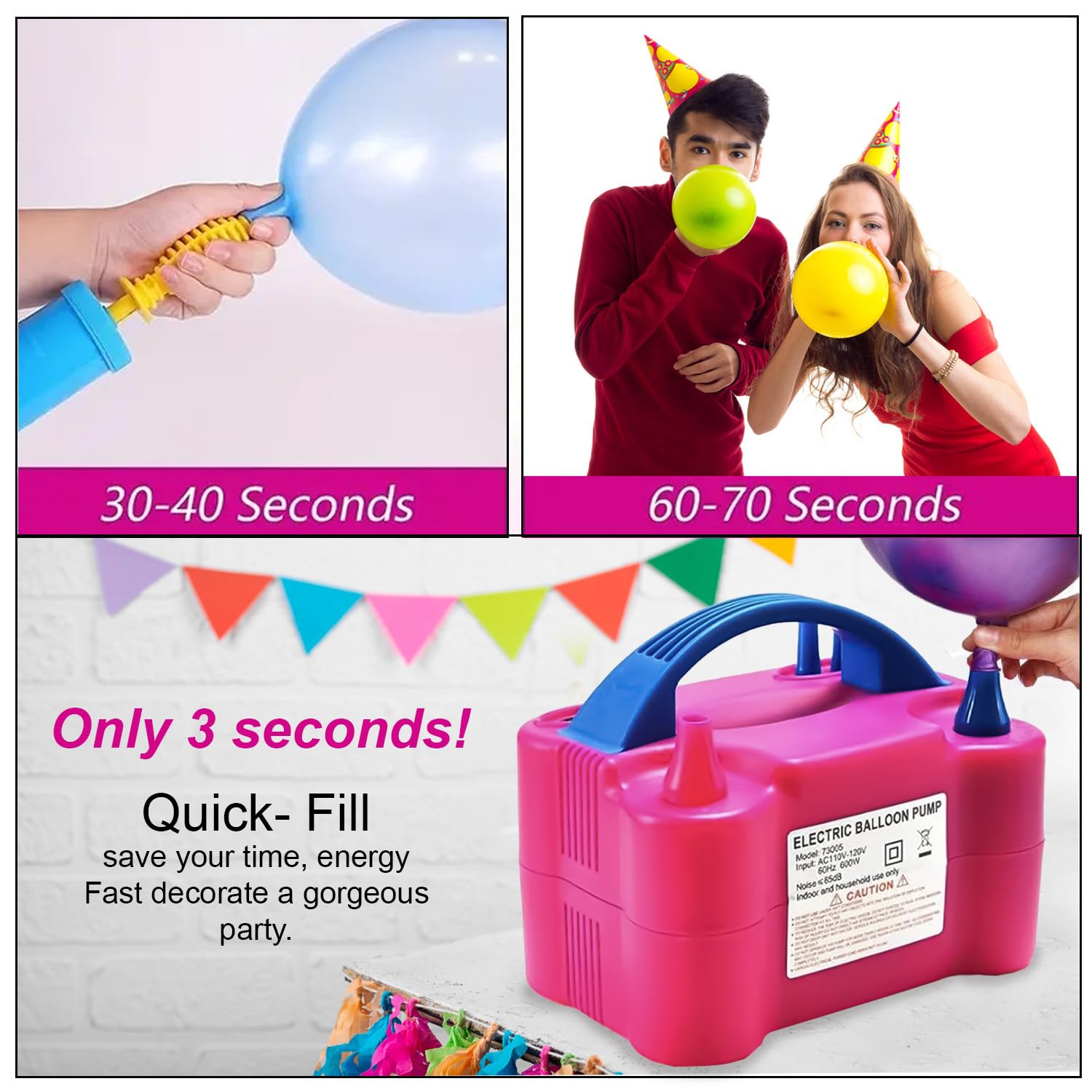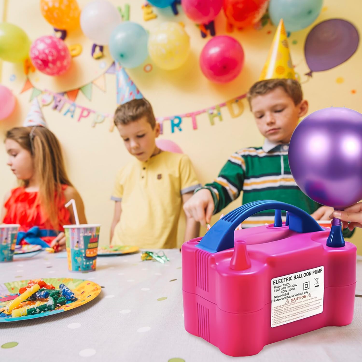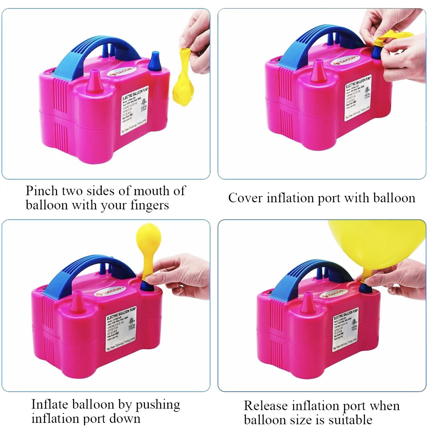 Effortlessly inflate balloons with this professional-grade electric pump machine, engineered for high-volume party and event setups. Featuring dual nozzles, it accommodates various balloon sizes simultaneously, dramatically reducing preparation time. The 220V motor delivers consistent, powerful airflow for quick inflation without manual effort. Ideal for balloon boutiques, event planners, and party organizers seeking reliable, time-saving equipment. Durable construction ensures dependable performance across countless celebrations and occasions.