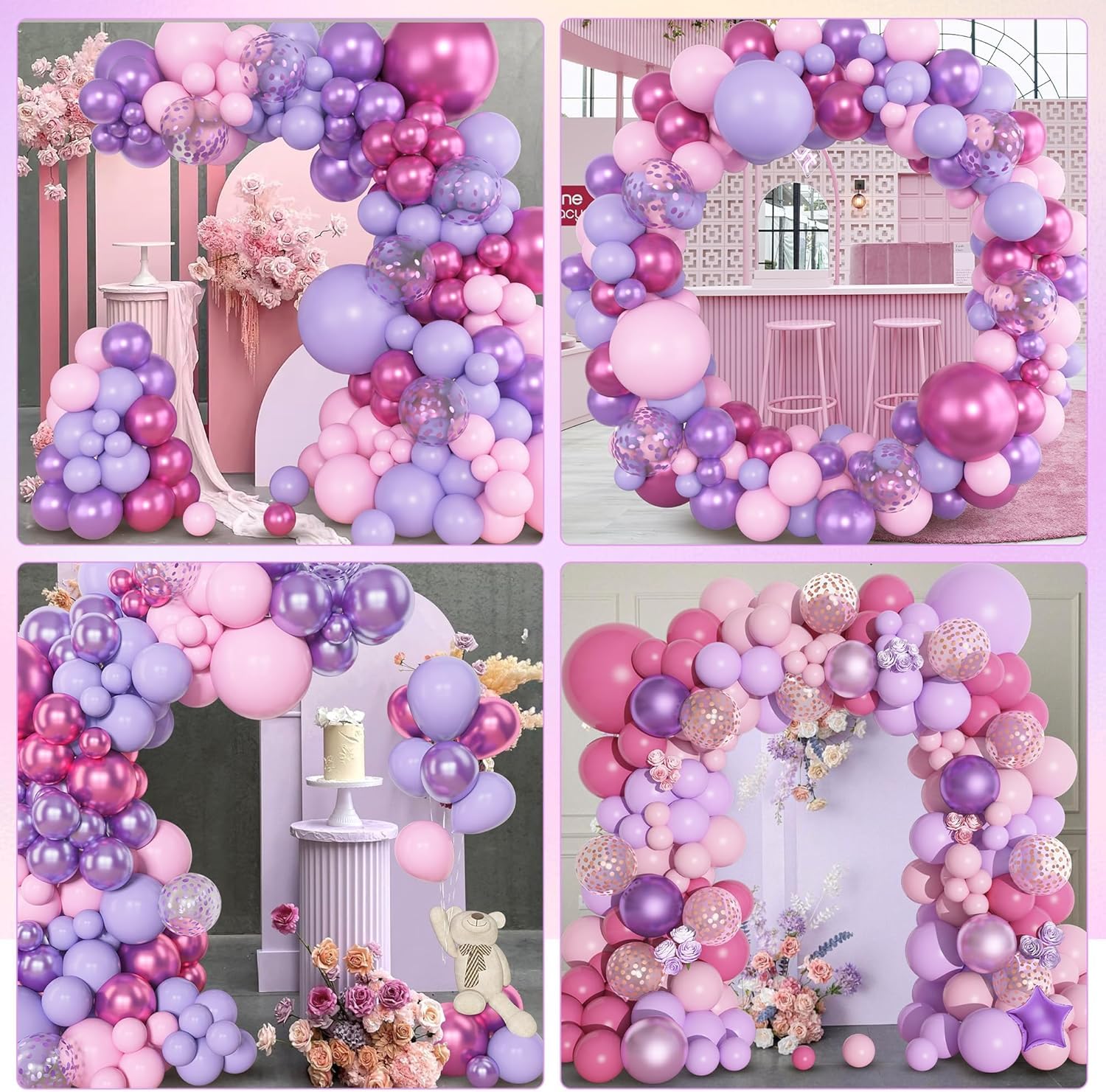 Pink Purple Latex Metallic Confetti Balloons kit - 153 Pcs Pack