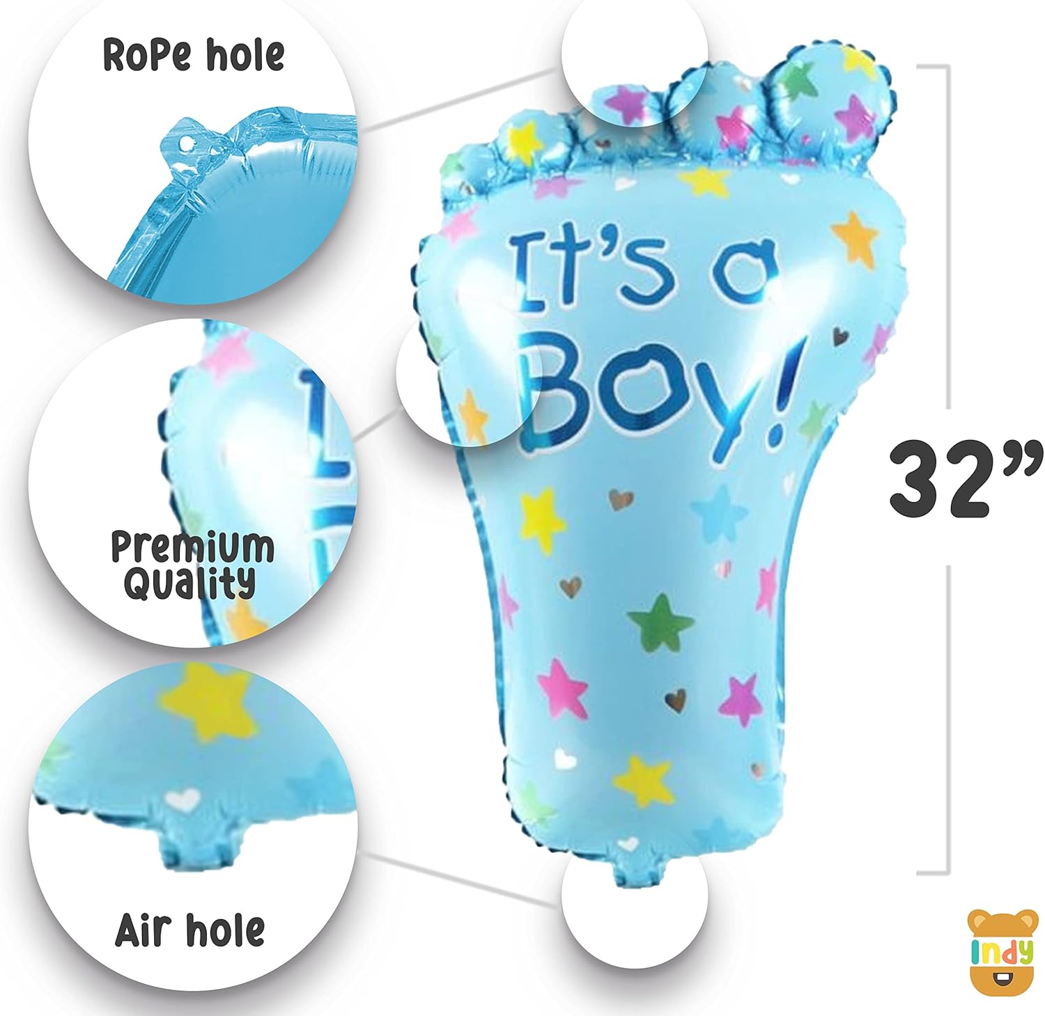 | Included components | 15 White Pastel Balloons (12 INCH), 15 Blue Pastel Balloons (12 INCH), 1 It’s A Boy Blue Bottle Foil Balloon (32 INCH), 1 It’s a Boy Blue Foot Foil Balloon (32 INCH), 7 Letter Baby Boy Blue Foil Balloon (16 INCH), 2 Blue Star Foil Balloons (18 INCH)15 White Pastel Balloons (12 INCH), 15 Blue Pastel Balloons (12 INCH), 1 It’s A Boy Blue Bottle Foil Balloon (32 INCH), 1 It’s… See more |