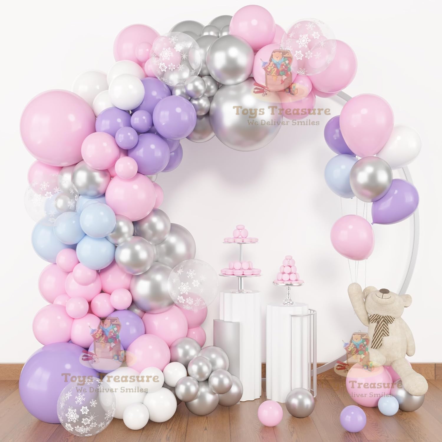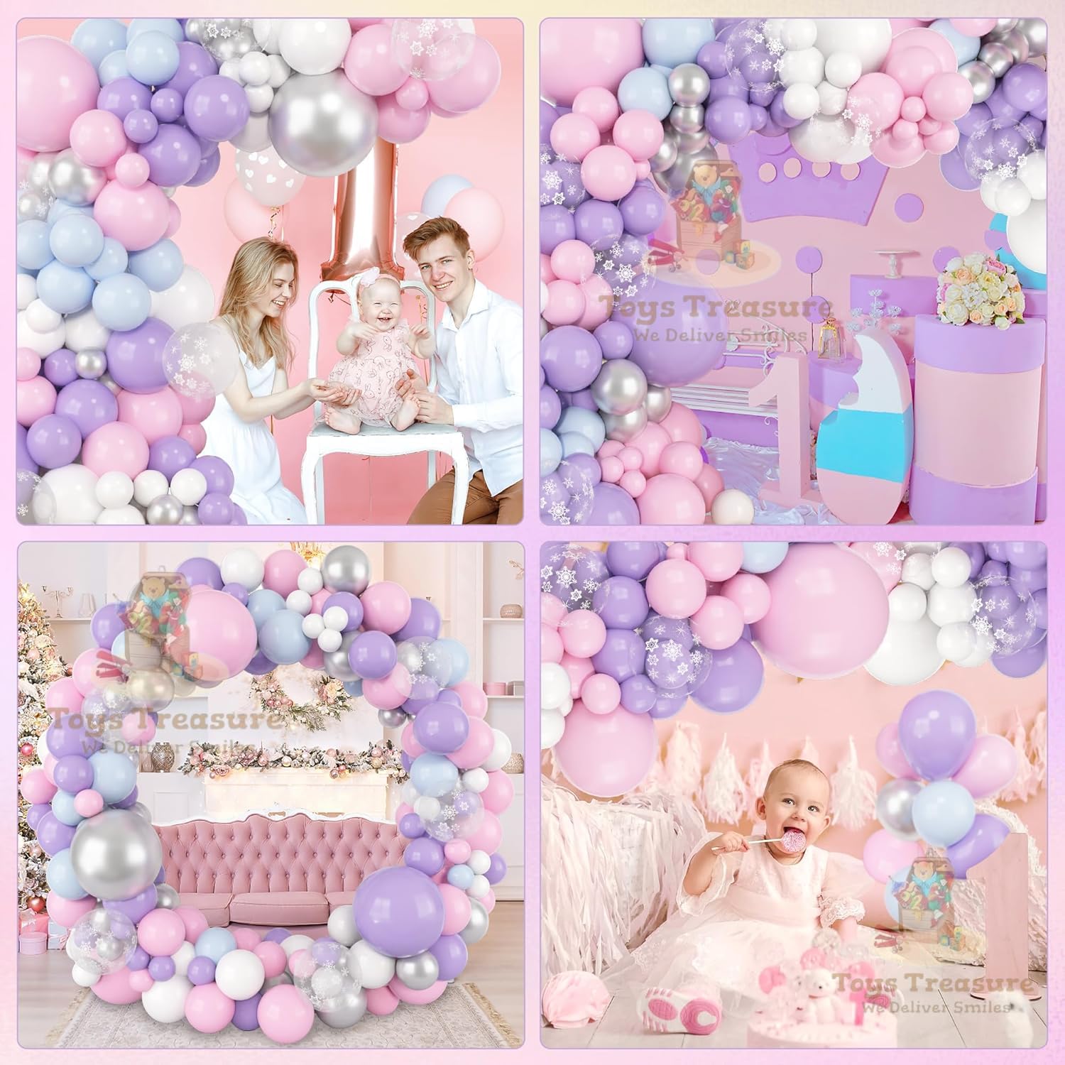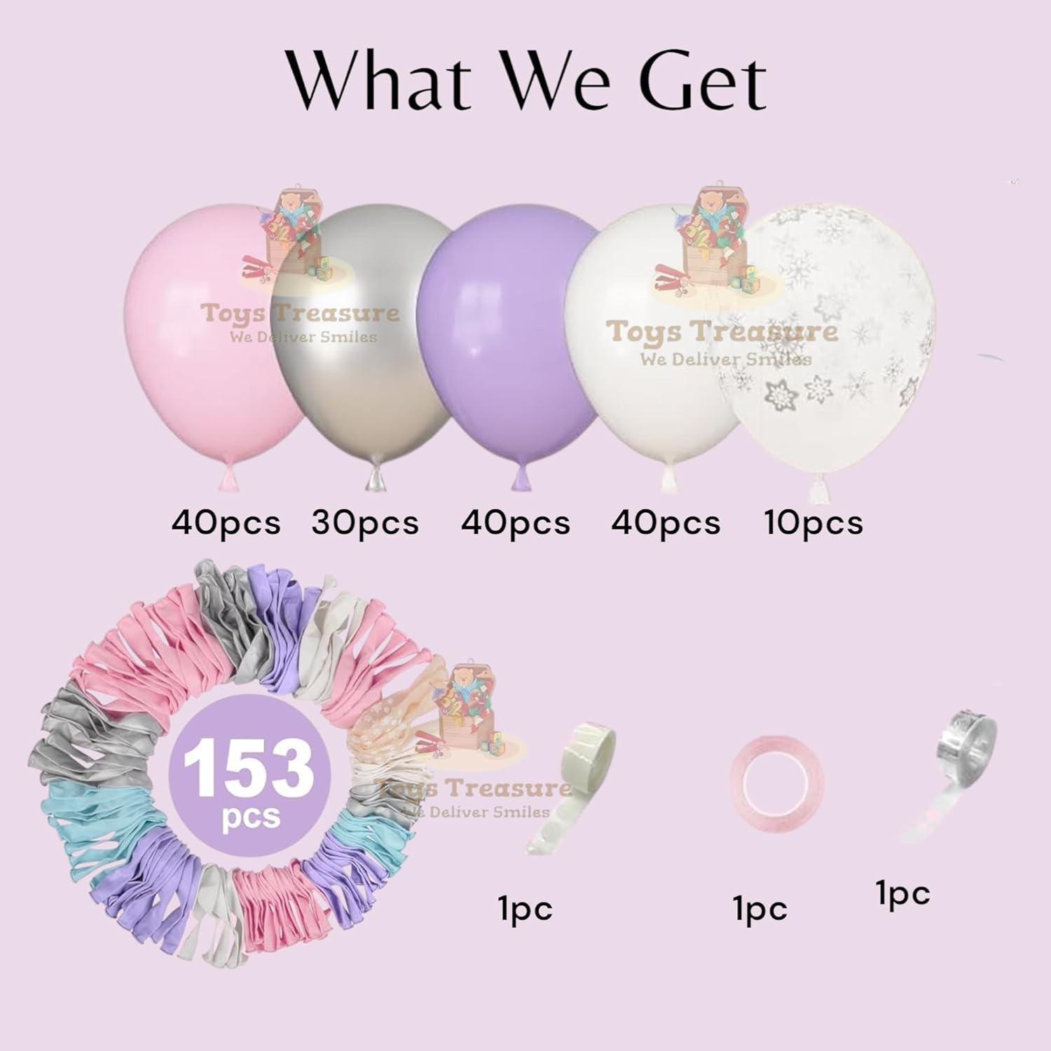 Purple Silver Latex Metallic Confetti Balloons kit - 153 Pcs Pack
