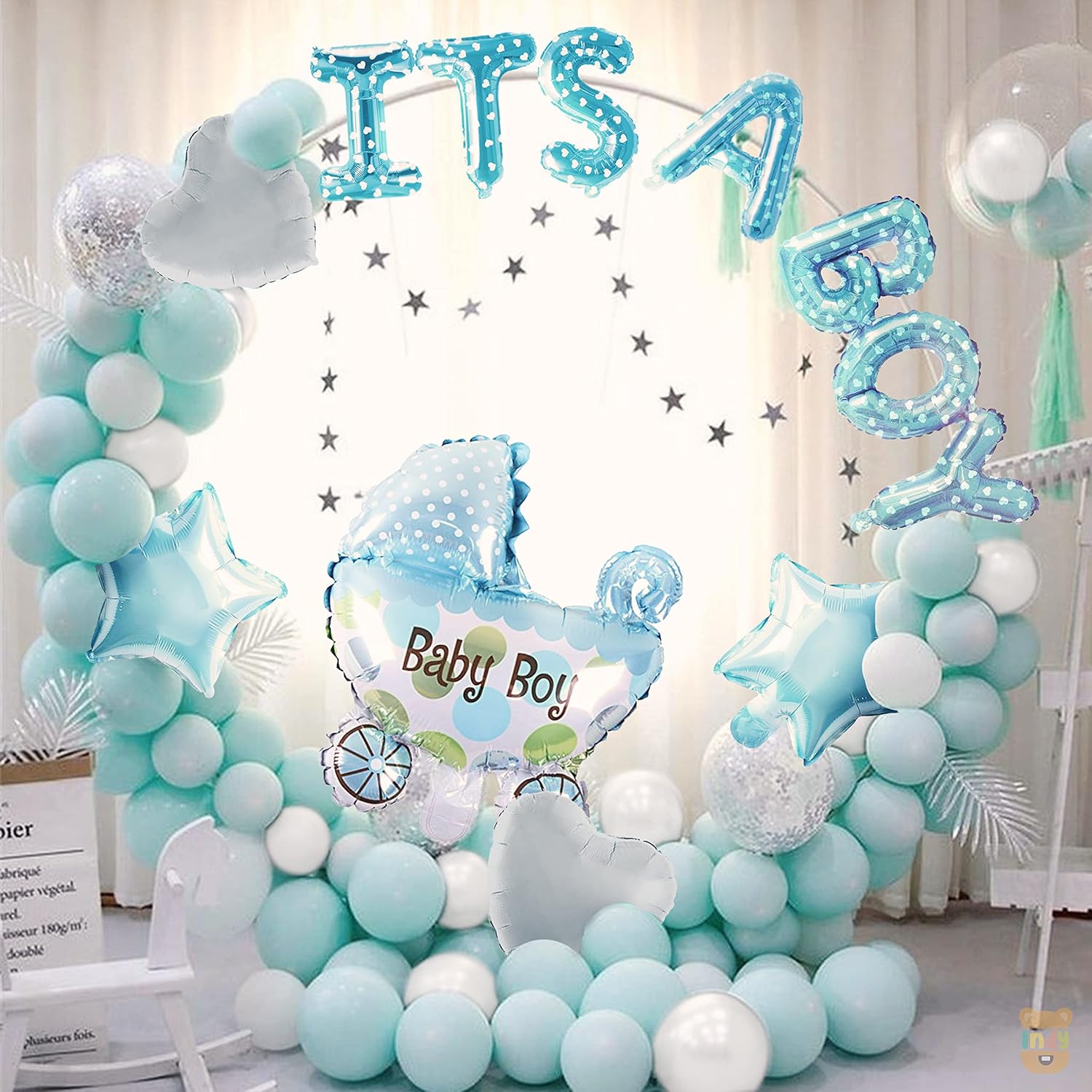 | Included components | 1 IT’S A BOY Blue Polka Dot Foil Balloon (16 INCH), 15 White Pastel Balloons (12 INCH), 15 Blue Pastel Balloons (12 INCH), 1 Baby Boy Blue Pram Foil Balloon (32 INCH), 2 Blue Star Foil Balloons (18 INCH), 2 Silver Heart Foil Balloons (18 INCH)1 IT’S A BOY Blue Polka Dot Foil Balloon (16 INCH), 15 White Pastel Balloons (12 INCH), 15 Blue Pastel Balloons (12 INCH)… See more |